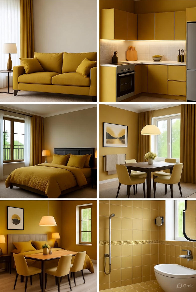 - Mustard Yellow Glow (Vintage Warmth) Adds retro charm