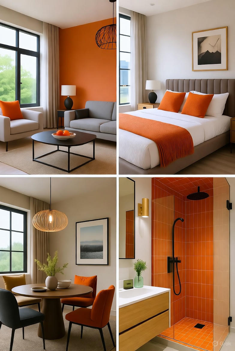 - Burnt Orange Accents (Retro Pop) Mold-resistant for humid homes.